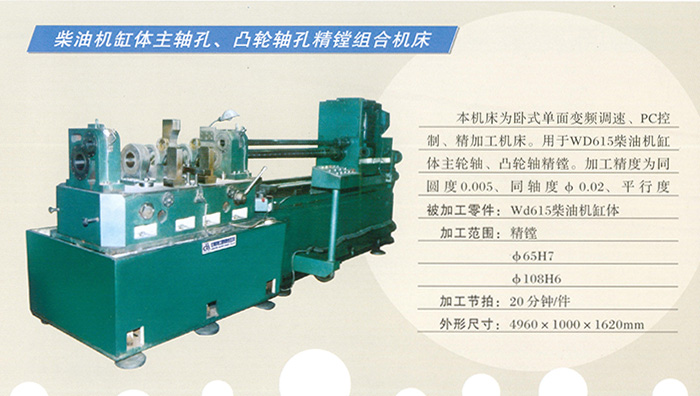 柴(chai)油(you)機(ji)缸(gang)體主(zhu)軸(zhou)孔、凸(tu)輪(lun)軸(zhou)孔(kong)精(jing)鏜(tang)組郃(he)機牀